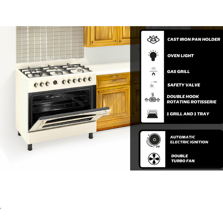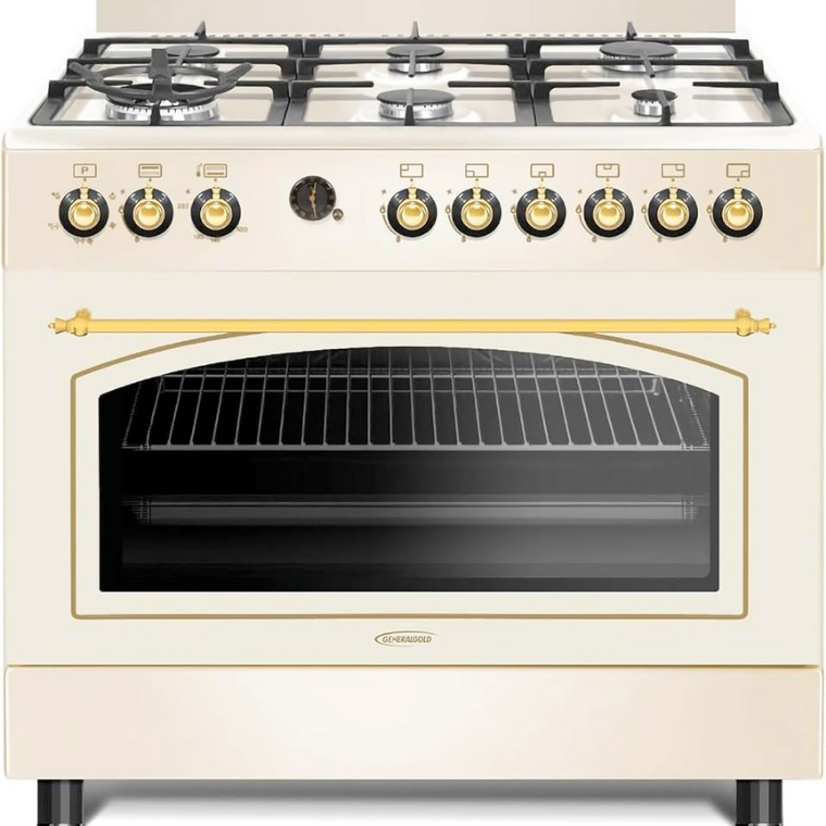 Cuisinière sur pied 6 feux, grande capacité et design élégant pour une cuisson professionnelle.